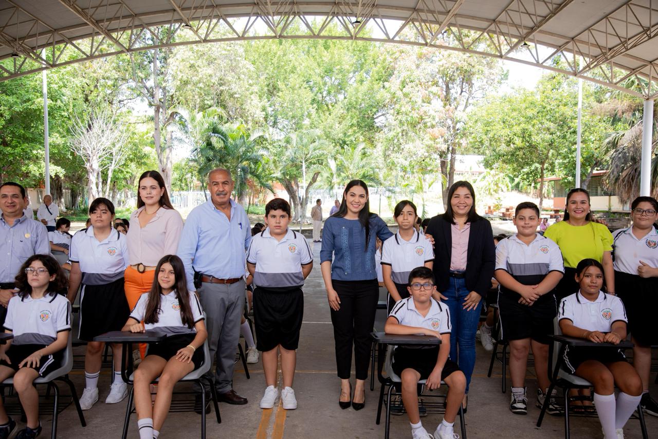 Indira Vizcaíno entrega mobiliario a estudiantes de la secundaria ‘Enrique Corona Morfín’