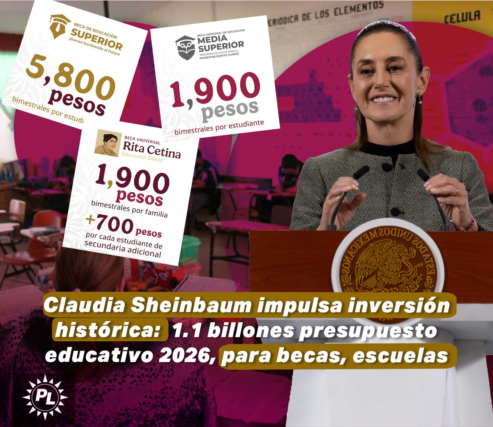 Claudia Sheinbaum impulsa inversión histórica: 1.1 billones presupuesto educativo 2026, para becas, escuelas y el futuro del Pueblo