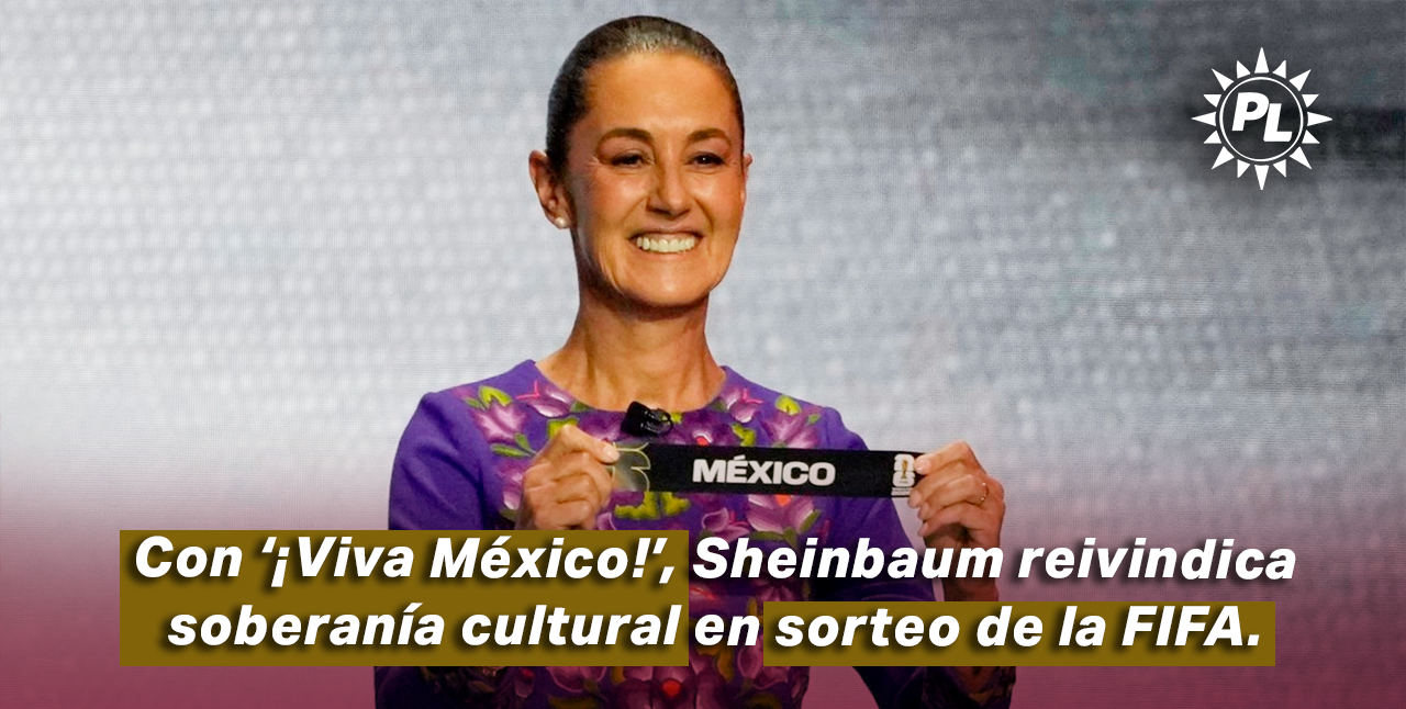 Con ‘¡Viva México!’, Sheinbaum reivindica soberanía cultural en sorteo de la FIFA.