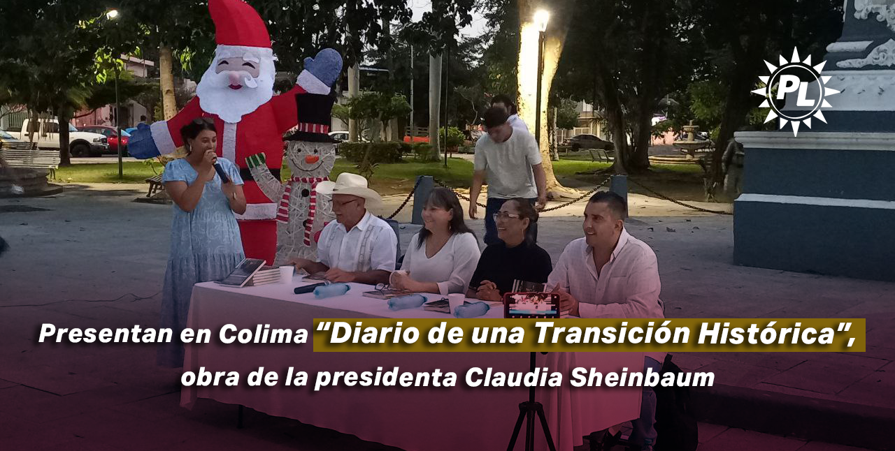 Colima, Col., 11 de diciembre de 2025. En un acto público en el Jardín Juárez de la capital, fue presentada la obra Diario de una Transición Histórica, escrita por la presidenta de México, Claudia Sheinbaum Pardo.