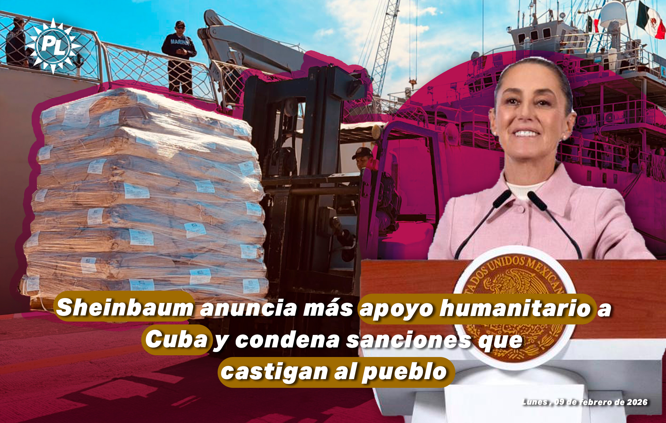 Ciudad de México. La presidenta Claudia Sheinbaum Pardo anunció que México enviará más apoyo humanitario a Cuba, tras el reciente traslado de 814 toneladas de víveres mediante dos buques con destino a la isla, y reiteró que el país mantendrá una política de solidaridad activa frente a las sanciones económicas impulsadas por Estados Unidos.
