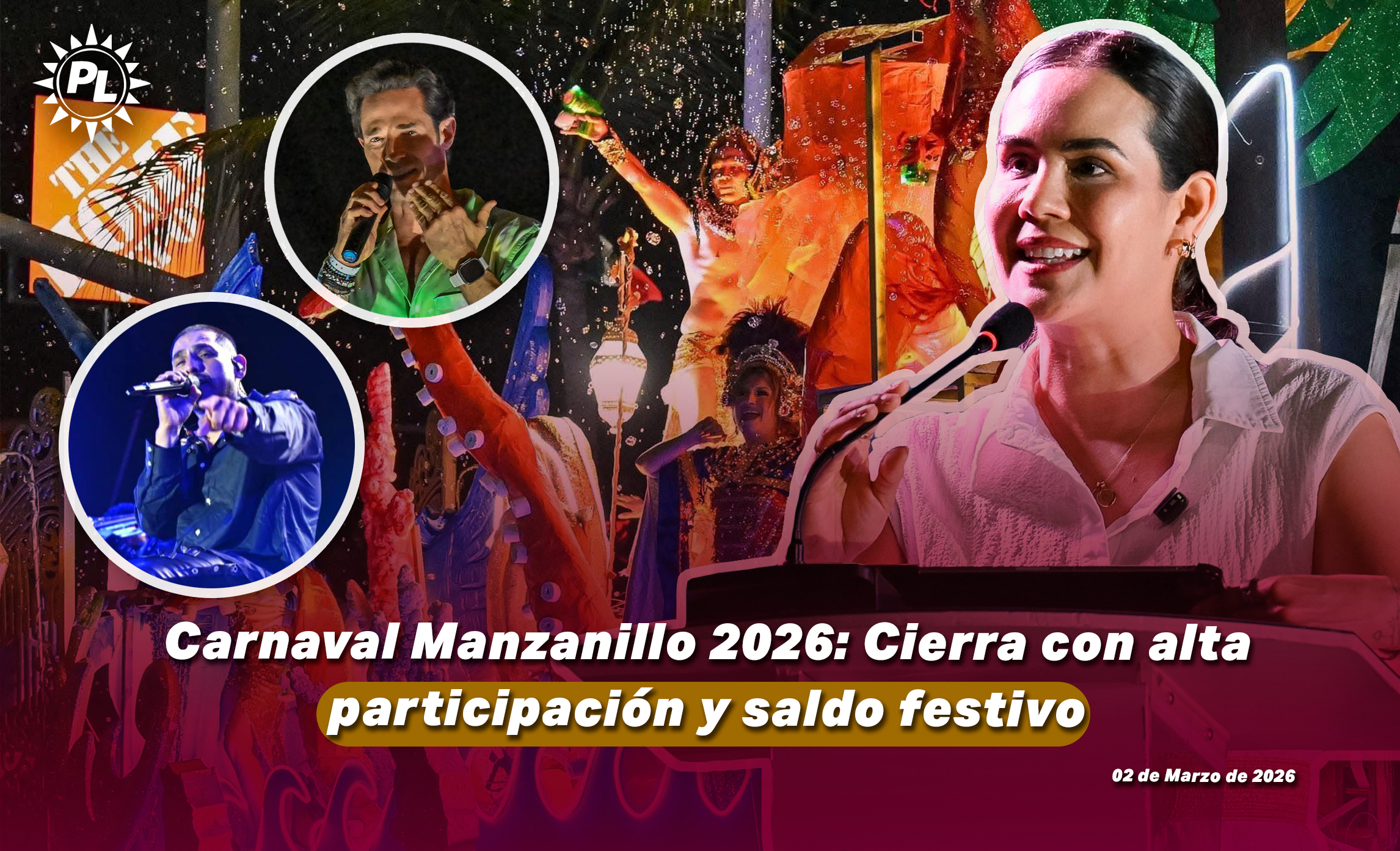 Manzanillo, Colima — 2 de marzo de 2026. El Carnaval Manzanillo 2026, bajo la temática “La Puerta del Pacífico”, concluyó tras tres días de actividades —26, 27 y 28 de febrero— con desfiles, comparsas y un cierre musical masivo que reforzó la identidad porteña y el dinamismo turístico del municipio.