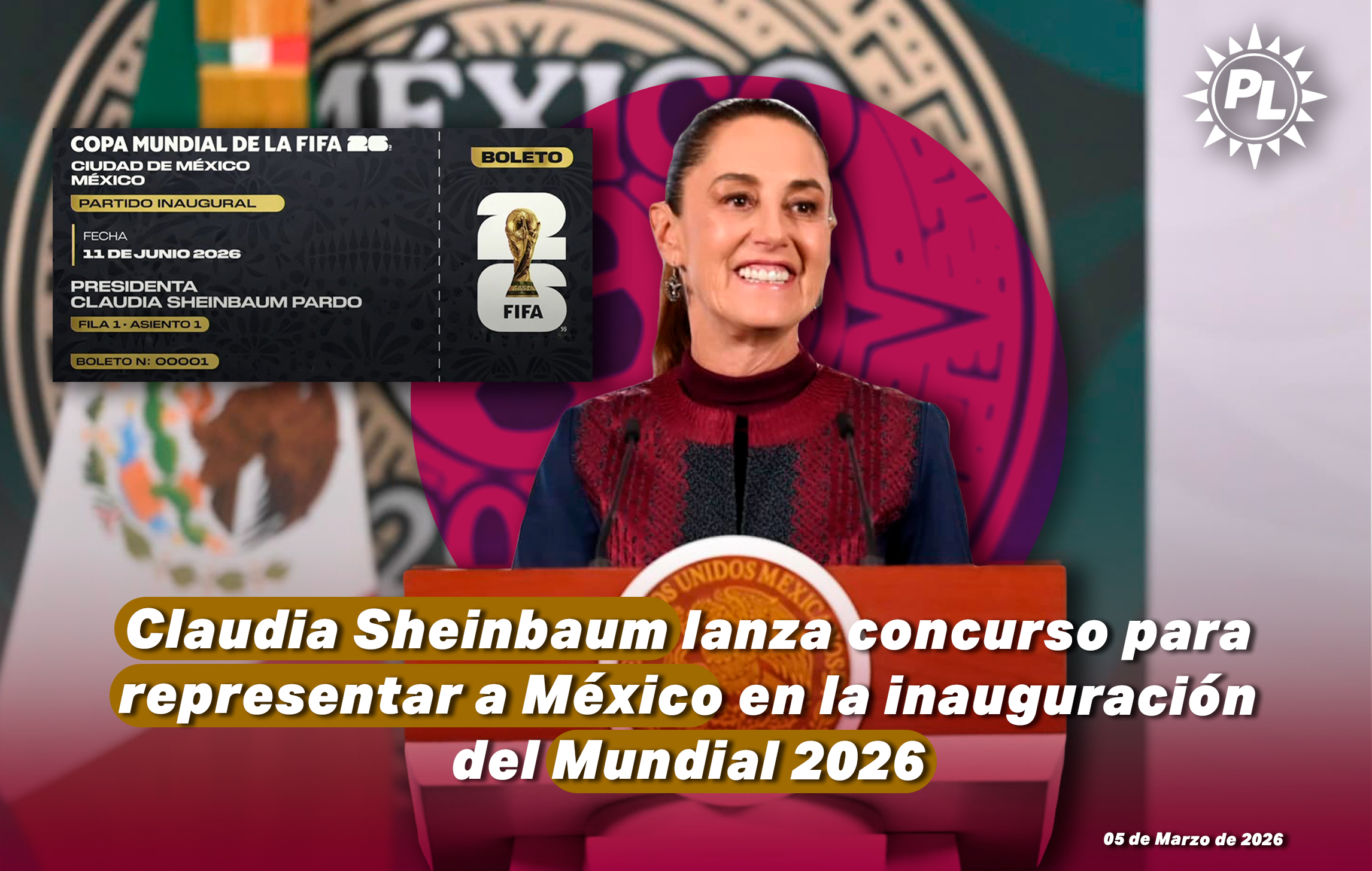 La presidenta Claudia Sheinbaum anunció el concurso “Representa a México en la Inauguración del Mundial”, una iniciativa dirigida a jóvenes que permitirá a una persona asistir al partido inaugural de la Copa Mundial de la FIFA 2026.