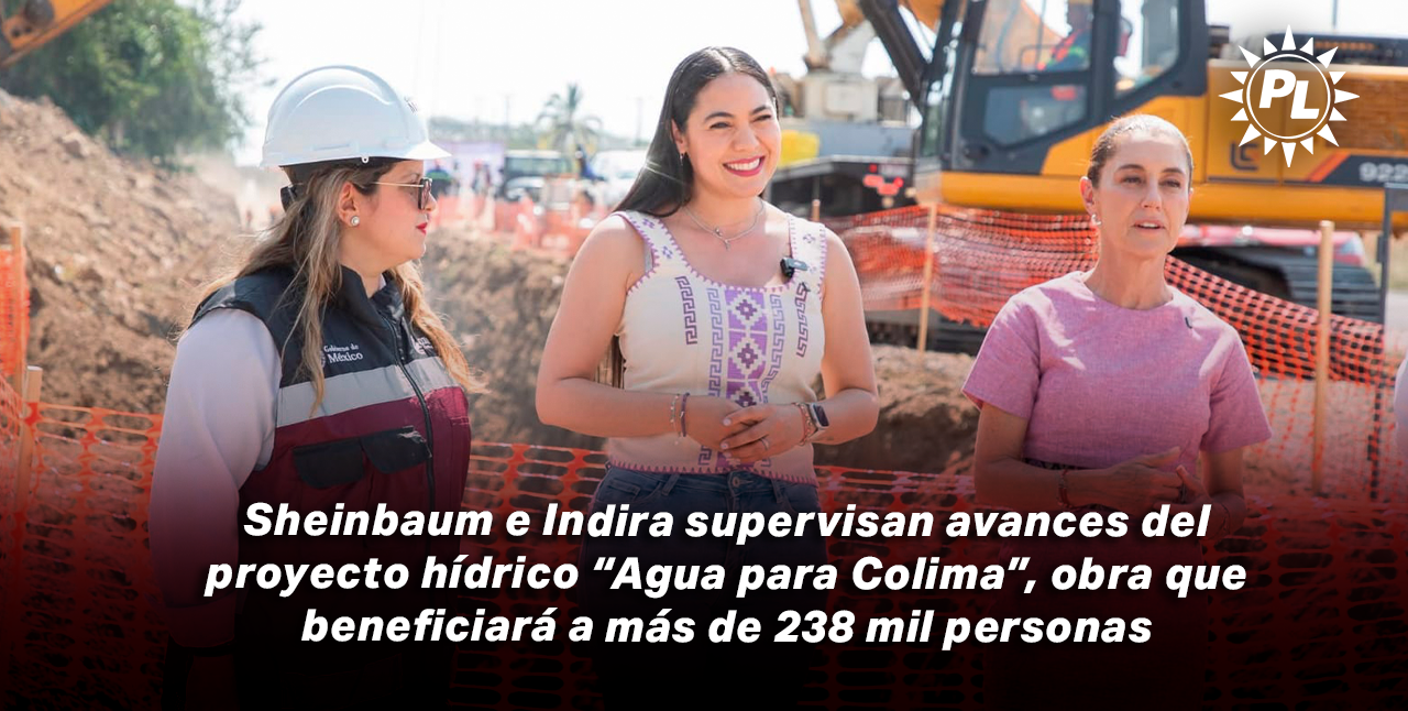 En el segundo día de su visita a Colima, la presidenta Claudia Sheinbaum y la gobernadora Indira Vizcaíno Silva supervisaron los avances del proyecto hídrico “Agua para Colima”, una obra estratégica destinada a garantizar el acceso digno, suficiente y continuo al agua potable para más de 238 mil habitantes de la zona metropolitana de Colima y Villa de Álvarez.